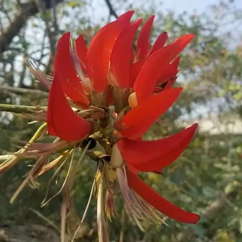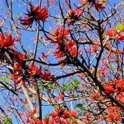 鹦哥花(学名: Erythrina arborescens Roxb.)是豆科刺桐属植物,小乔木或乔木。树干和枝条具皮刺。羽状复叶,叶柄平滑,顶生小叶近肾形,侧生小叶斜宽心形,两面无毛。总状花序生于先端叶腋,花鲜红色,大,具花梗,苞片单生,卵形,花萼陀螺形,花冠红色,旗瓣近卵形,舟状,斜倒卵形,花丝比旗瓣稍短,子房具长柄,荚果弯曲,种肾形子带白色或褐色,长约2厘米。