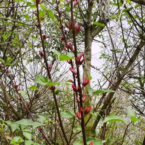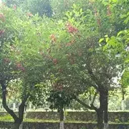 挖塘定植、单株、群状、成行、成片栽种均可,成年树树冠较开张,初植时,一般株行距3米×4米或4米×4米。山地造林密度可适当增大,株行距缩小为3米×3米;群状种植株行距可为2米×3米,以增强群体效益,开花繁茂集中。