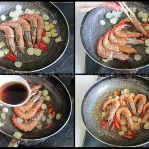 3、烹调干烧大虾时,切记不可上色过重,不宜添加老抽,否则成菜色泽发黑,不美观。