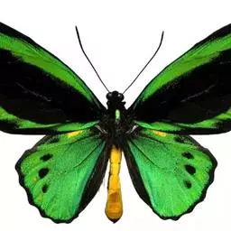 亚历山大女皇鸟翼凤蝶,又称大鸟翼蝶,是鳞翅目凤蝶科鸟翼蝶属蝴蝶;翅膀圆阔、褐色,…