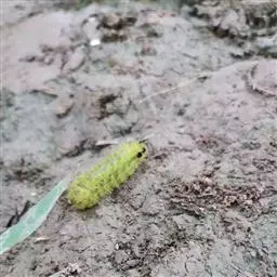 衣蛾,幼虫是一个小型褐色的毛毛虫,一般藏在丝质的袋状物或网状物(称为筒巢)内,在墙壁上可见到一个黏着水泥的纺锤形丝袋,内有一深褐色头的幼虫。成虫为浅黄色的蛾子,惧光。如将其按死,会发出难闻气味。