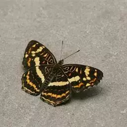 直纹蜘蛱蝶是蛱蝶科蜘蛱蝶属动物,后翅外缘呈角度,M1脉处突出,翅面有白色或黄色中横带,…