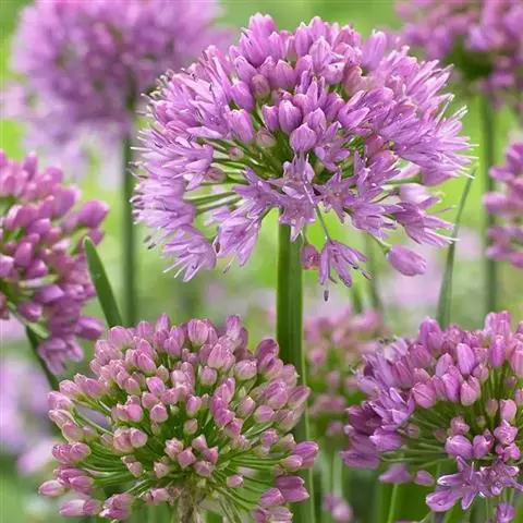 鳞茎常数枚聚生,卵状圆柱形,粗0.5-1厘米;鳞茎外皮灰褐色或带黄色,皮纸质,条裂,有时顶端纤维状。叶1-2枚,光滑,管状,中空,略比花葶短,粗2-6毫米。花葶圆柱状,中空,光滑,高10-40(-60)厘米,粗2-4毫米,1/3-1/2被光滑的叶鞘。总苞紫红色,2裂,宿存;伞形花序近球状,具多而密集的花,小花梗常不等长,短于花被片,内层的比外层的长,有时与花被片近等长,基部无小苞片;花紫红色至淡红色,具光泽;花被片等长,披针形、矩圆状披针形或矩圆形,先端短尖或渐尖,长7-11(-17)毫米,宽3-4毫米;花丝为花被片长的1/3-1/2(-2/3),下部1-1.5毫米合生并与花被片贴生,内轮花丝基部狭三角形扩大,比外轮的基部宽1.5倍;子房近球状,腹缝线基部具小蜜穴;花柱不伸出花被外。花果期7-9月。