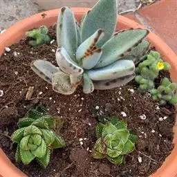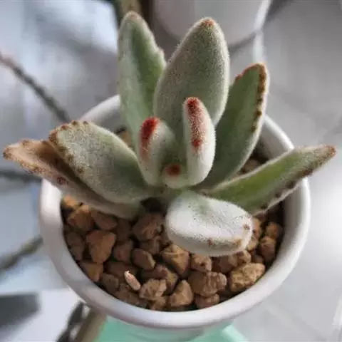 福兔耳是景天科伽蓝菜属的多肉植物,野外分布于非洲马达加斯加中部。植株叶片对生,长梭型,…