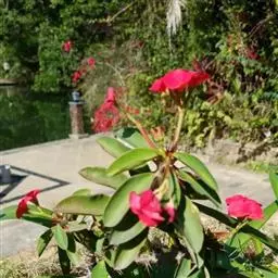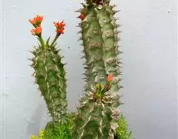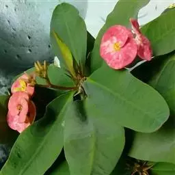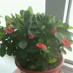 虎刺梅:别称铁海棠,是蔓生灌木植物。茎多分枝,长60-100厘米,直径5-10毫米,具纵棱,密生硬…
