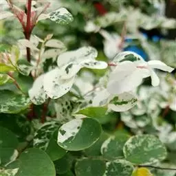 常绿小灌木。株高约50~120厘米,枝条暗红色 。叶互生,圆形或阔卵形,全缘。白色或有白色斑纹。嫩…