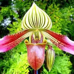 虎斑兜兰兰科,兜兰属地生或半附生植物。叶基生;数枚至多枚,叶片带形、革质。花葶从叶丛中长出,花苞片…