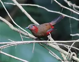 栗耳凤鹛,雌雄羽色相似。额、头顶至枕灰色,头顶有一短的不甚明显的羽冠,…