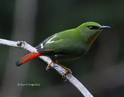 黑额山噪鹛是噪眉科、噪鹛属中型鸟类,体长27-31厘米。上体橄榄褐色,尾上尾下覆羽棕红色,…