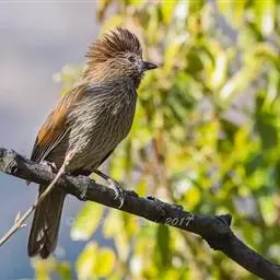 黑顶噪鹛:中型鸟类,体长24-26厘米。前额、脸、颏、喉黑色,头顶黑褐沾棕或深棕橄榄褐色,…