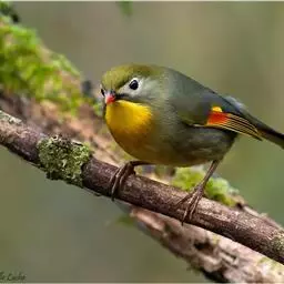 银耳相思鸟小型鸟类,体长14~18厘米。头顶黑色,耳羽银灰色,前额橙黄色;外侧飞羽橙黄色,基部朱红色,…
