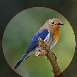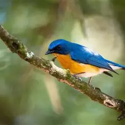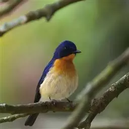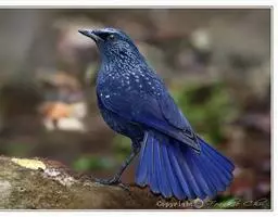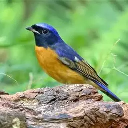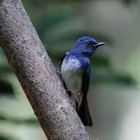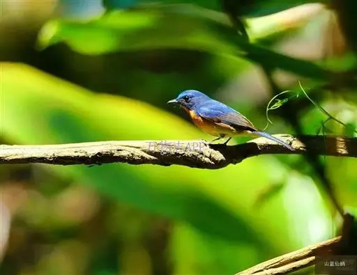 山蓝仙鹟:小型鸟类,体长13-15厘米。雄鸟额基和眼先黑色,颏橙棕色,仅颏尖为蓝黑色,…