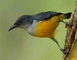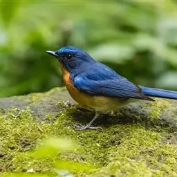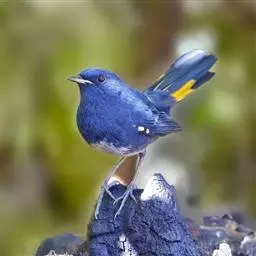 海南蓝仙鹟,Cyornis hainanus (Ogilvie-Grant,1900),鹟科蓝仙鹟属的一种小型鸟类,体长13~15厘米。上体包括两翅和尾表面暗蓝色,前额和眼上眉斑较鲜亮。喉、胸暗蓝色,下胸和两胁蓝灰色,其余下体白色。雌鸟上体橄榄褐色,头和头侧沾灰,眼圈皮黄色,两翅和尾表面栗褐色。喉、胸橙皮黄色,其余下体白色。