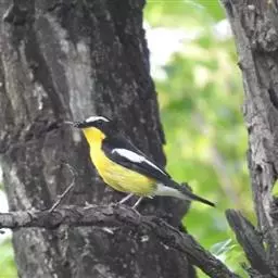 白眉姬鹟是小型鸟类,体长11-14厘米。雄鸟上体大部黑色,眉纹白色,在黑色的头上极为醒目。腰鲜黄色,…