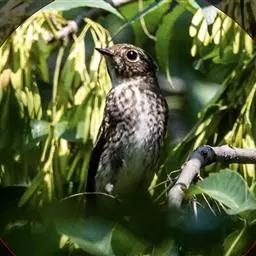 具林栖鹟的典型特性,喜低地常绿林的中高层。叫声甜美悦耳似鹊鸲,为独特的三个上升音接着一个下降音,以及最后的上升音“hello mummy”。