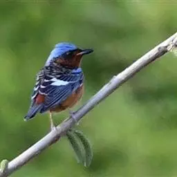 棕腹大仙鹟:体重24-28克,体长15-17厘米,是一种小型的色彩亮丽的鹟。雄鸟上体深蓝,下体棕色,…