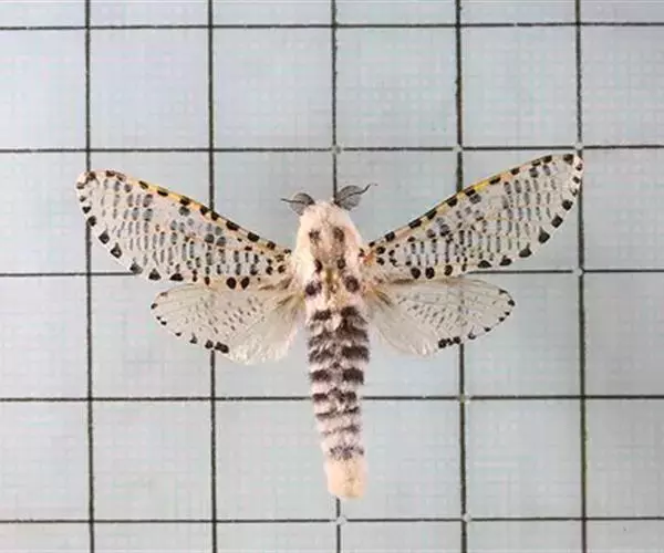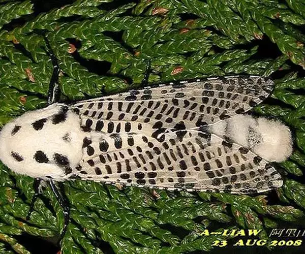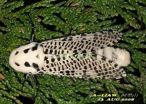 多斑豹蠹蛾,学名是Zeuzera multistrigata,木蠹蛾科豹蠹蛾属的一个物种。多斑豹蠹蛾的成虫灰白色,体长29毫米,翅展55~61毫米。头、胸部都密被灰色短毛。