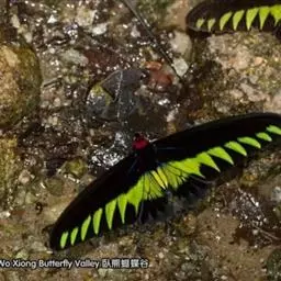翠叶红颈凤蝶是凤蝶科红颈凤蝶属的一种大型蝴蝶,该物种共有11个亚种。因其脖子上有一圈红色的绒毛,…