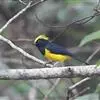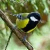 黄颊山雀是雀形目山雀科山雀属鸟类。雄鸟额、头顶和羽冠为具有光泽的黑色;额基、眼先、眉纹、脸颊和耳羽等头颈侧为鲜艳的明黄色;贯眼纹黑色;后颈亦具一黄斑;上体灰黄绿色,羽缘黑色;尾羽黑色具蓝灰色羽缘,基部白色;下体颏、喉至上胸为富有金属光泽的黑色;胸下有一黑色宽中央纵纹,一直延伸至肛周;其余下体白色;胸侧和两胁染黄色或蓝灰色;虹膜暗褐色;喙黑色;脚铅蓝灰色至铅黑色。雌鸟似雄鸟,但上体光泽较弱,胸腹部黑色纵带不明显。黄颊山雀分布于亚洲东南部地区,在中国分布于华中、华南和西南等地。栖息于中低山常绿阔叶林、针叶林和混交林中,也见于山麓疏林灌丛草坡或茶园、果园等地。常成对或小群活动,也和大山雀等其他小型鸟类混群,活跃地在乔灌木枝叶间飞翔跳跃。主食鳞翅目和鞘翅目等昆虫,兼食植物种实。繁殖期在4-6月,营巢于树洞、岩隙或墙缝中。窝卵数为3-7枚,卵灰白色且有红褐斑,雏鸟晚成。黄颊山雀被列入中国林业局200