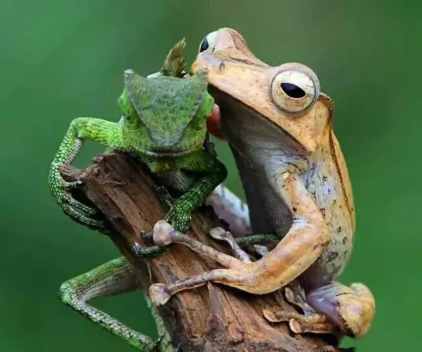 树蛙,无尾目树蛙科的1属,体多细长而扁,后肢长,吸盘大,指、趾间有发达的蹼,可以用其在空中滑翔,骨骼方面的主要特征与蛙科同。椎体参差型或前凹型;指、趾末端膨大成明显的吸盘,吸盘腹面边缘有边缘沟,吸盘的背面一般无横凹痕,腹面呈肉垫状。多树栖,外形和生活习性与雨蛙属颇近似,而亲缘关系甚远。树蛙科仅限于旧大陆,产于亚洲及非洲南半部热带和亚热带地区,从印度、斯里兰卡到日本、菲律宾和大巽他群岛;欧洲、美洲、大洋洲无分布。约8属,260种左右;1个属(攀蛙属Chiromantis)局限分布于热带非洲,亚洲有7属。