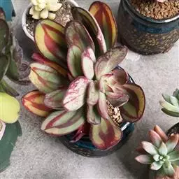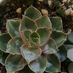 小红衣是景天科、拟石莲花属的一种多肉植物。叶片匙形,扁平细长,叶表具白粉,有明显的半透明边缘,…