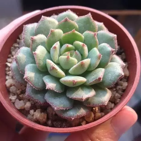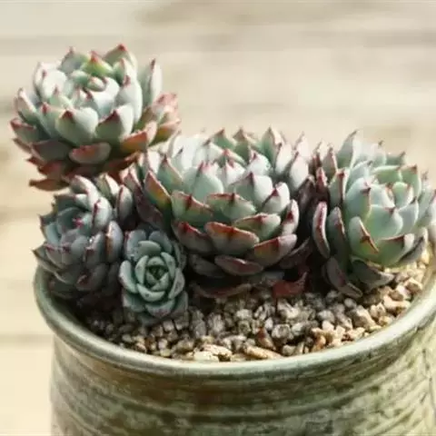 花乃井是景天科拟石莲花属的多肉植物,原产于墨西哥。株型小巧,叶片饱满,在阳光充足、温差大的环境下叶…