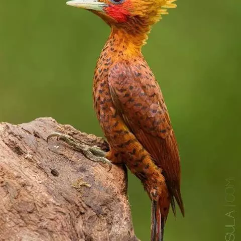 绿啄木鸟是鴷形目啄木鸟科绿啄木鸟属鸟类。雄鸟额和头顶前部辉红色,鲜丽异常;雌鸟头上无红色;嘴尖直,…