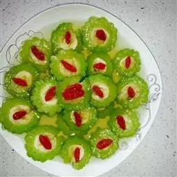苦瓜片用盐少许稍腌,轻轻挤去部分水分,然后再炒,苦味少而味道鲜。