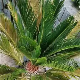 苏铁养护时应保持土壤水分在60%左右,浇水应遵循见干见湿的原则。春夏季叶片生长旺盛时期,特别是夏季高温干燥气候要多浇水,早晚1次,并喷洒叶面,保持叶片清新翠绿。入秋后可2~5天浇水1次。生长期每月可施1~2次施复合肥或尿素。尿素最好是用0.2%的水溶液喷施叶片作叶面肥,施叶面肥应遵循“少吃多餐”的原则。每年早春施花生麸1次,花生麸可不用水沤制直接施于盆面上或埋于盆土里。家庭每天煮饭前的洗米水,不要沾有油渍,用桶、盆盛装,翌日作液肥浇灌,具有一定的肥效。
