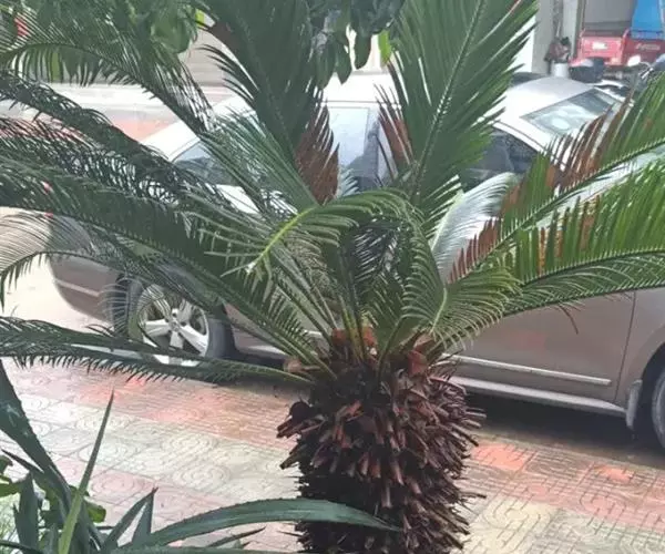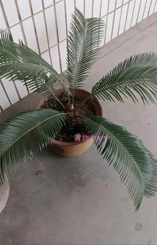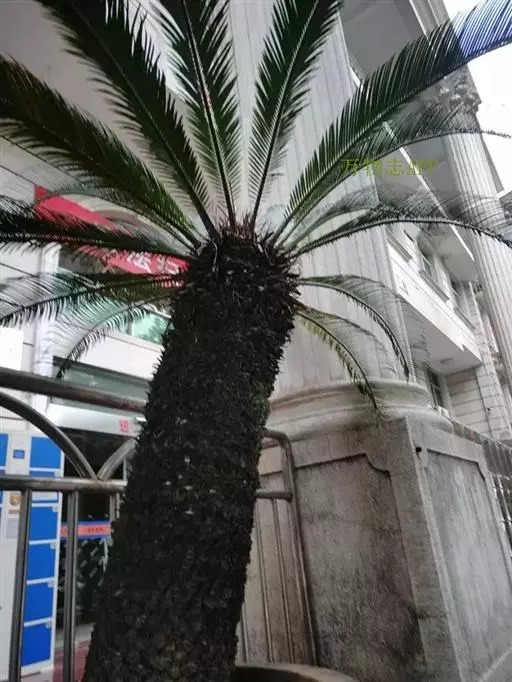 苏铁。俗称:铁树,别名:辟火蕉、凤尾蕉、凤尾松、凤尾草,拉丁文名:Cycas revoluta Thunb. 苏铁科、苏铁属, 一说是因其木质密度大,入水即沉,沉重如铁而得名;另一说因其生长需要大量铁元素,故而名之。又名凤尾蕉、避火蕉、凤尾松,多种植在南方,现广泛分布于中国、日本、菲律宾和印度尼西亚等国家。苏铁最为出名的是其开花,被称之为“铁树开花”。