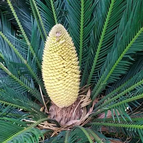 石山苏铁是苏铁科苏铁属植物,树干矮小,基部膨大成卵状茎或盘状茎,上部逐渐缩成圆柱形或卵状圆柱形,…