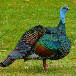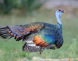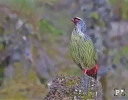 叫声:孔雀雉叫声宏亮、高昂,似“guanggui--guanggui(光贵)”,傣语称之为“诺光贵”,是因为“诺”是傣语中“鸟”的意思。雄鸟占域叫声为响亮的trew-tree爆破音。雌鸟告警时发出响亮的ga-ga声或作快速的ok-kok-kok-kok叫。