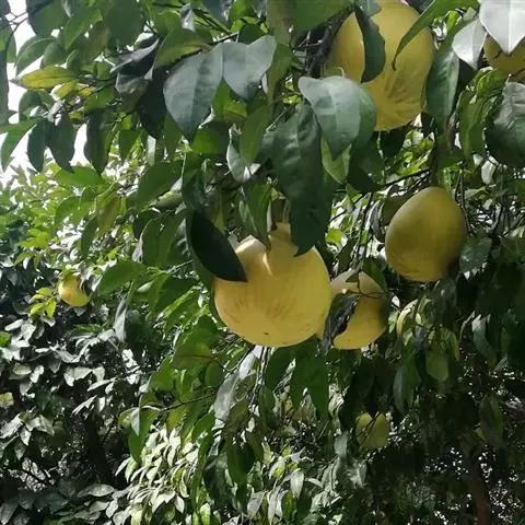 沙田柚,芸香科柑橘属乔木。树干较高,枝叶繁茂,嫩枝扁且有棱,叶质颇厚且为浓绿色,…