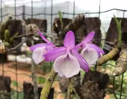风兰 H.H.Hu):植株高8-10厘米。茎长1-4厘米,稍扁,被叶鞘所包。叶厚革质,狭长圆状镰刀形。…