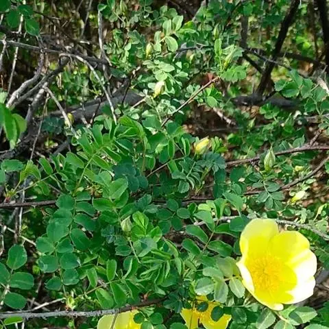 单瓣黄刺玫是直立灌木,高2-3米;枝粗壮,密集,披散;小枝无毛,有散生皮刺,无针刺。…