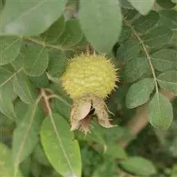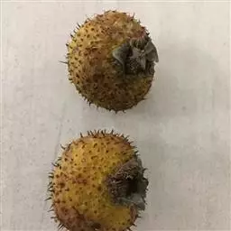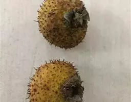果近球形,直径6-8毫米,红褐色或紫褐色,有光泽,无毛,萼片脱落。