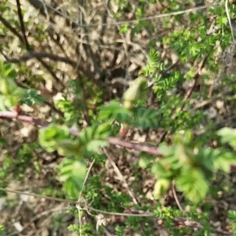 野蔷薇为攀援灌木;小枝圆柱形,通常无毛,有短、粗稍弯曲皮束。
