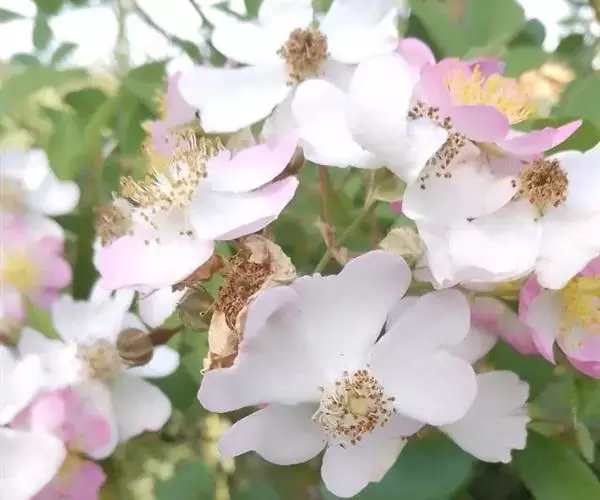 功用: 野蔷薇根为收敛药;花为芳香理气药,治胃痛、胃溃疡;果实有利尿、通经、治水肿之功。