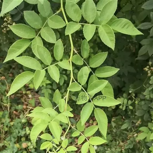 小叶5-9,近花序的小叶有时3,连叶柄长5-10厘米;小叶片倒卵形、长圆形或卵形,长1.5-5厘米,宽8-28毫米,先端急尖或圆钝,基部近圆形或楔形,边缘有尖锐单锯齿,稀混有重锯齿,上面无毛,下面有柔毛。