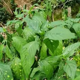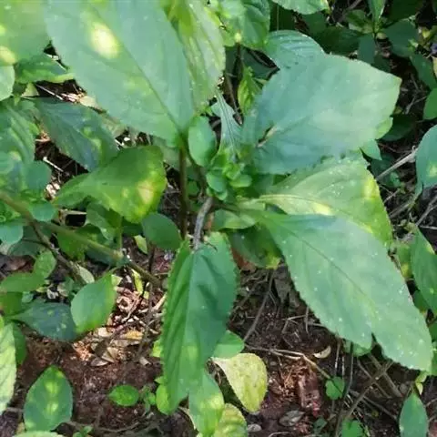 【基诺药】迷帕帕迷:叶捣敷治骨质增生;煎腹治口腔炎,腮腺炎,扁桃体炎 感冒发热《基诺药》。咪怕:叶治疗腮腺炎,扁桃体炎,口腔炎。
