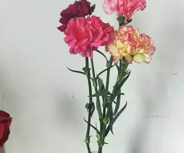 2.浇水:康乃馨生长强健,较耐干旱。多雨过湿地区,土壤易板结,根系因通风不良而发育不正常,所以雨季要注意松土排水。除生长开花旺季要及时浇水外。平时可以少浇水,以维持土壤湿润为宜。空气湿润度以保持在75%左右为宜,花前适当喷水调湿,可防止花苞提前开裂。