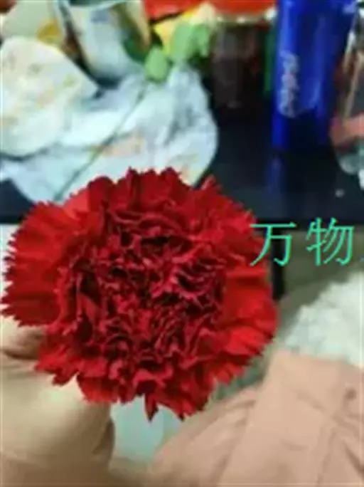 2、开放度小:一手捏住花头底部,另一手用食指侧面轻轻用力拨花头外侧的花瓣,这样花就开大了。不可以用手去拨花心,让康乃馨泡水后慢慢开放即可。