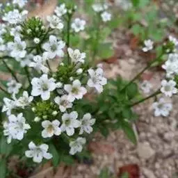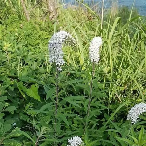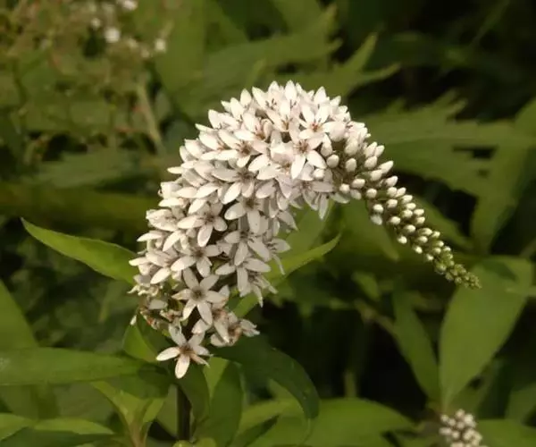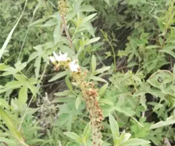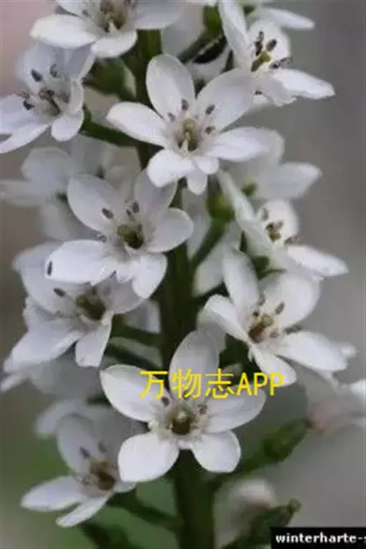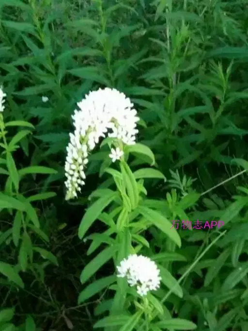多年生草本,具横走的根茎,全株密被卷曲柔毛。茎直立,高30-100厘米。叶互生或近对生,长圆状披针形、倒披针形以至线形,长4-10厘米,宽6-22毫米,先端钝或锐尖,基部楔形,近于无柄。总状花序顶生,花密集,常转向一侧;花序轴长4-6厘米,后渐伸长,果时长可达30厘米;苞片线状钻形,花梗长4-6毫米,通常稍短于苞片;花萼长3-4毫米,分裂近达基部,裂片长圆形,周边膜质,顶端圆形,略呈啮蚀状;花冠白色,长7-10毫米,基部合生部分长约2毫米,裂片舌状狭长圆形,宽约2毫米,先端钝或微凹,常有暗紫色短腺条;雄蕊内藏,花丝基部约1.5毫米连合并贴生于花冠基部,分离部分长约3毫米,具腺毛;花药椭圆形,长约1毫米;花粉粒具3孔沟,长球形 [(29-31.5) × (20-24)微米],表面近于平滑;子房无毛,花柱短,长3-3.5毫米。蒴果球形,直径2.5-4毫米。花期5-8月;果期8-10月。 [1-3]