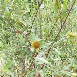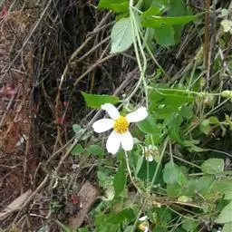 鬼针草(学名:Bidens pilosa L.),一年生草本,茎直立,钝四棱形。茎下部叶较小,很少为具小叶的羽状复叶,两侧小叶椭圆形或卵状椭圆形。头状花序直径8-9毫米。总苞基部被短柔毛,条状匙形,上部稍宽。无舌状花,盘花筒状,冠檐5齿裂。瘦果黑色,条形,略扁,具棱,上部具稀疏瘤状突起及刚毛,顶端芒刺3-4枚,具倒刺毛。