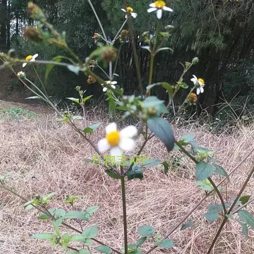 白花鬼针草 白花鬼针草(Bidens pilosa L. var. radiata Sch.-Bip.)与鬼针草的区别主要在于头状花序边缘具舌状花5-7枚,舌片椭圆状倒卵形,白色,长5-8毫米,宽3.5-5毫米,先端钝或有缺刻。