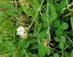 白车轴草,豆科车轴草属的多年生草本植物,茎贴地匍匐;叶柄直立,小叶心形,边缘具细齿,叶脉明显,…