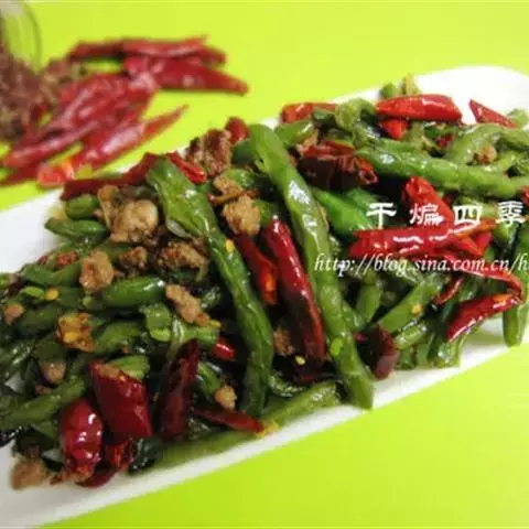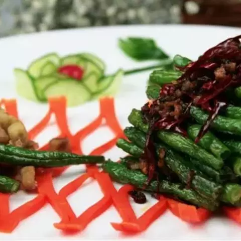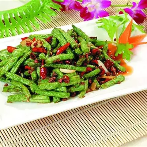 榄菜四季豆是以牛肉馅、四季豆为主料,盐、洋葱为配料制作而成的菜品。