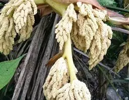 花序生于叶闻,雌雄花序异型,雄花序具有分枝,着生几个柔荑状圆柱形的分枝花序,总花序梗及分枝被包于宿存的佛焰苞内,雄花成对着生于小佛焰苞(苞片)的腋部,通常伴随着有毛的小苞片;花萼和花冠管状,3裂;雄蕊6枚,着生于花冠管口,花丝短,基部变宽;雌花序分枝比雄花序的少,但较大;雌花成对着生或单生,比雄花大;苞片2片;中性花伴随着雌花,只有1个苞片;花萼基部管状,上部3裂;花冠约与花萼等长或稍长,上部3裂;退化雄蕊6枚;子房3,心皮,3胚珠,不完全3室,被扁平、光滑或直立的带刺状尖的鳞片,花柱短,柱头3个。