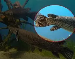 双须骨舌鱼,又名银龙鱼,是骨舌鱼目骨舌鱼科骨舌鱼属大型鱼类。其体延长,甚侧扁腹部具棱尖;头大,…