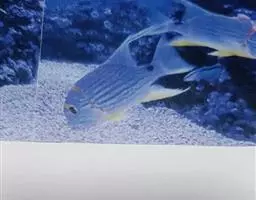 双棘甲尻鱼体呈卵型,体被中小型栉鳞,前鳃盖骨具棘,间鳃盖骨无棘,体黄色,具8~9条淡青色之黑边横带…